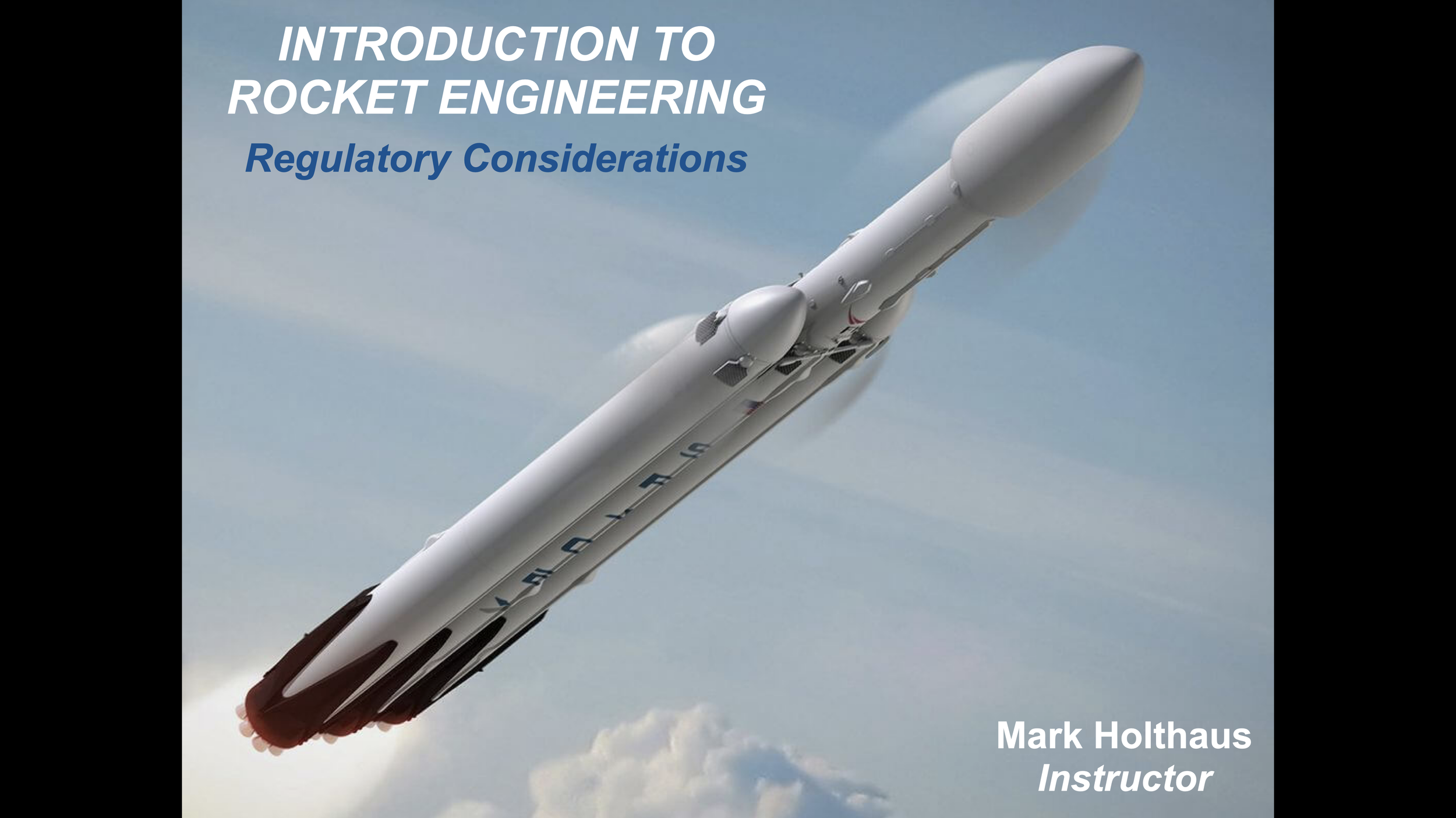 Progress Introdction to rocket Engineering Complete & Continue Next Lesson Learn More Unit ONE 1 Lesson Introduction to Rocketry Unit TWO 1 Lesson Propulsion Unit THREE 1 Lesson Missions Unit FOUR 1 Lesson Rocket parts (Slide and Video Presentation) Unit FIVE 1 Lesson Rocket propellent systems Unit SIX 1 Lesson Rocket engines Unit SEVEN 1 Lesson Recovery systems Unit EIGHT 1 Lesson Launch systems Unit NINE 1 Lesson Flight Termination Unit Ten 1 Lesson Regulatory Considerations Introdction to rocket Engineering Complete & Continue Next Lesson Learn More Unit Ten Regulatory Considerations