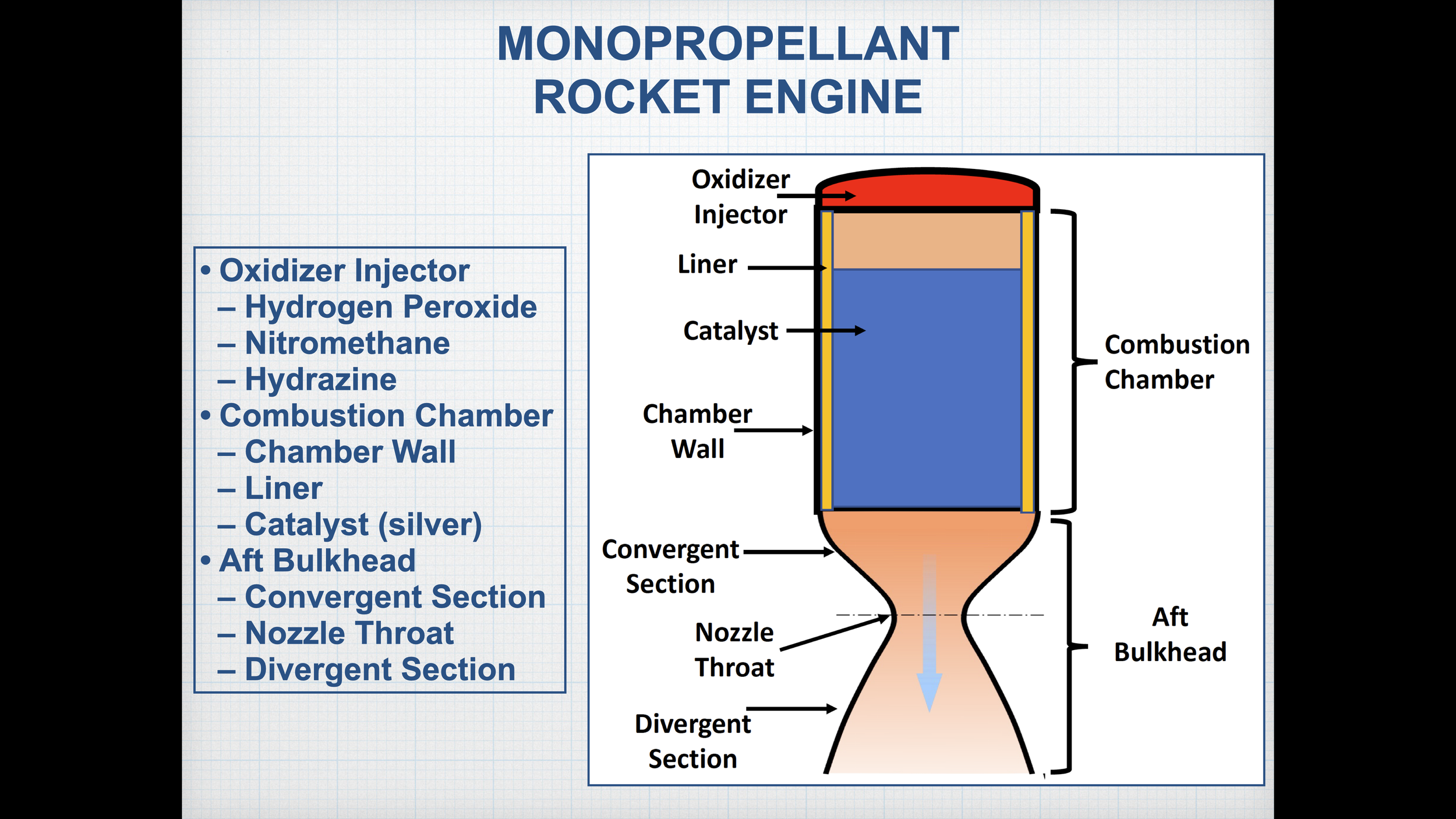 Progress Introdction to rocket Engineering Complete & Continue Next Lesson Learn More Unit ONE 1 Lesson Introduction to Rocketry Unit TWO 1 Lesson Propulsion Unit THREE 1 Lesson Missions Unit FOUR 1 Lesson Rocket parts (Slide and Video Presentation) Unit FIVE 1 Lesson Rocket propellent systems Unit SIX 1 Lesson Rocket engines Unit SEVEN 1 Lesson Recovery systems Unit EIGHT 1 Lesson Launch systems Unit NINE 1 Lesson Flight Termination Unit Ten 1 Lesson Regulatory Considerations Introdction to rocket Engineering Complete & Continue Next Lesson Learn More Unit SIX Rocket engines